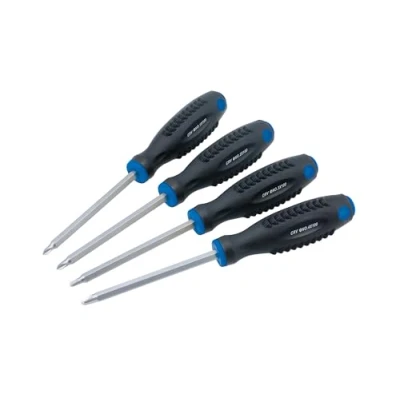 Suitable for use on tamper resistant Tri-wing security screws, typically used on electrical products, computers & in the aerospace industry. Sizes: 1, 2, 3, 4mm. Blade length: 100mm; total length: 207mm. Manufactured from chrome vanadium with magnetic tips. Soft grip handles with hanging hole.