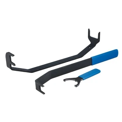 Set of 3 tools for the quick release of HGV trailer electronic connectors on the EBS module (power supply & wheel speed sensors etc). Designed for working in tight areas. Applications include: Bayonet nut on power connector, 2/4/6/12 pole sensor connectors. Manufactured from steel (S45C, SS400 & SS41) with a black phosphate finish. Vinyl dipped handles for grip & comfort.