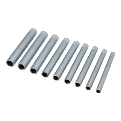 Laser 8904 Extra Long Socket Set 1/4" D 9pc 8, 9, 10, 11, 12, 13, 14, 15, 16mm Single hex Profile Length: 140mm Satin Finish Chrome Vanadium Presented in an EVA Foam Tray