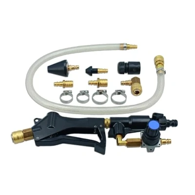 Ideal for cleaning out corrosion build up, oil residue from head gasket leaks & water pump debris build up. Universal fitment - The kit includes adaptors for large bore main hoses & smaller heater matrix sizes. Adaptor sizes: 17mm & 20mm heater hose barbs, together with a small conical adapter for flushing heater matrix. Includes built in back pressure control valve to prevent air pressure pressurising the water feed. Combine water, air pressure & pulsations for better cleaning.