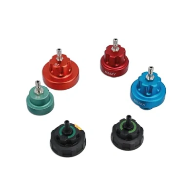 Applications include: Fiat, MG, Renault & Tesla EV/Hybrid cooling caps. Includes: Tesla Model 3/Y (red), Tesla Model S/X (blue), MG EV (x2, black, orange), Alfa Romeo, Citroen, Nissan, Vauxhall, Peugeot, Renault, Volvo (black R) & Fiat 500E (green). Use with Laser cooling pressure test kit, Part No. 5614 or pump, Part No. 1735. Adaptors have quick-release couplings to match the pump from Part No. 5614. For coolant vacuum refill kit please see Laser Part No. 9116.