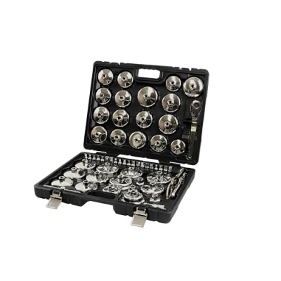 Applications include: Alfa Romeo, Audi, BMW, Buick, Citroën, Chrysler, Daihatsu, Fiat, Ford, Honda, Hyundai, Jeep, Kia, Lancia, Mazda, Mercedes-Benz, Mitsubishi, Nissan, Opel, Peugeot, Porsche, Renault, Suzuki, Toyota, Vauxhall, Volkswagen, Volvo. Cup sizes include: 64-65mm diameter x 14 flats, 86-87 x 16, 66-67 x 14, 84 x 14, 73-74 x 14, 75-76 x 15, 74 x 8, 73-74 x 15, 72-73 x 14, 77 x 12, 78-79 x 15, 73 x 15, 74-75 x 14, 86 x 18, 88-89 x 15, 90-91 x 15, 92-93 x 15, 93-94 x 15, 80 x 12, 79-80 x 15, 101 x 15, 91-92 x 15, 89 x 12, 64-65 x 14, 64-65 x 14, 95.5-85.2 x 16, 91.6 x 16, 27 x 6, 32 x 6, 36 x 6, 86.3 x 16, 74.4 x 14. Cups use with 1/2"D socketry or a 22mm spanner. Drain plugs use with 3/8”D socketry. Also includes 3/8"D T-bar & extensions. Manufactured from electro plated Chrome Vanadium steel for strength & durability. Supplied in a robust blow mould carry case.