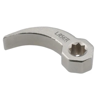 Pry bar adaptor head, for use with a breaker bar, wheel brace or ratchet. Can also be used with a 27mm open ended spanner. 1/2"D x double square (8pt) profile, which allows you to position it precisely. Ideal for use in tight spaces. Length: 75mm. Width: 15mm. Manufactured from SCM440 steel for strength (hardness 40-44), with a nickel-plated finish. A smaller 3/8"D pry bar wrench adaptor is also available, please see Laser Part No. 8814.