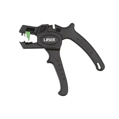 Simple to use. Set the length of insulation to be removed by moving the green wire stop & every length stripped will be the same every time. Auto adjusts to suit cable diameter. Features a pistol style grip, for easy one-handed operation, together with an integral wire cutter. Stripping range: 0.2 - 4mm² (24 - 12 AWG); Stripping length: 6 - 15mm; Cutting range: up to 2.5 mm². Dimensions: 160 x 140 x 25mm. Manufactured from Nylon + 30% glass fibre, for strength with low weight.