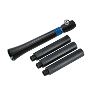 Small button type blow gun, featuring a trumpet shaped nozzle, that creates a vortex-like funnel of air to blast away dust & debris. Features a 32mm diameter trumpet nozzle, ideal for tight spaces. Supplied with 3x 100mm long extensions, ideal for accessing deep recessed areas. Thread: 1/4" BSP. For use with Connect Part Nos. 30951, 37096 or 30954 airline coupling. Free speed: 5500rpm. Working pressure: 90psi (6.2 bar). Max pressure: 116psi (8 bar). Meets EN ISO 20643 standards. Air consumption: 170L/min (6CFM). Noise level: 100dB.