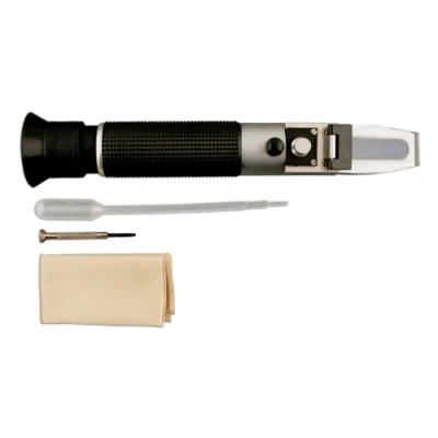 Brake fluid refractometer which checks the boiling point and water content in Dot 4 brake fluid