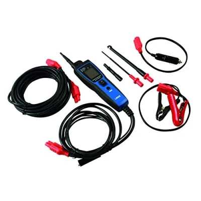 Multi function power probe & automotive tester with colour screen. Voltage measurement range 0 - 70V DC, DC current range 0 - 5 amp. Temperature range: -50° to +205°C.Frequency = 0 - 300kHz (square wave). Resistance range = 0 - 200kΩ. Kit includes: 1 vehicle auxiliary socket connector, 1 x long testing probe, 1 x wire piercing probe, K type temperature probe, 6m extension cable. Equipped with double fuse protection, internal auto recovery fuse (self reset 60 seconds) = 5 amps; replaceable 20A spade fuse. 12-24V power source required. Supplied in storage case with user manual.