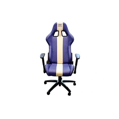 Blue with white stripe design Features metal base with arm rest and Laser Tools Racing logo Covered with PU leather-look material Height of seat back 900mm, width of seat 500mm, width of seat back 550mm 5 castors Maximum load 150kg
