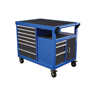 Overall size: 1123 x 791 x 844mm. Drawer sizes 5: 568 x 398 x 75mm, 2: 568 x 398 x 154mm, 1: 283 x 398 x 75mm, 1: 283 x 398 x 154mm, 1: 283 x 398 x 233mm. Drawer capacity 40kg with auto return function and ball bearing slide function. Steel thickness 0.8mm with EVA matting on top, side and drawer liners providing additional tool protection. TPR castor wheels with 2 fixed & 2 swivel with brake castors (5" x 2").