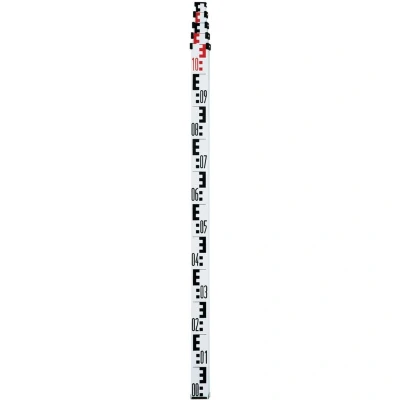 This easy-to-read, highly stable levelling staff is suitable for levelling devices and rotary lasers. It has a robust aluminium profile and can be used in extremely demanding conditions. It has a maximum height of 4 metres and a minimum height of 1.19 metres. Made of a durable aluminium profile Maximum height of 4 metres Material: Aluminum Max. Height: 4 m Min. Height: 1,9 m Operating Conditions: -10°C 50°C Storage Conditions: -20°C 70°C Dimensions (W x H x D): 55 mm x 1205 mm x 40 mm Weight: 1450g