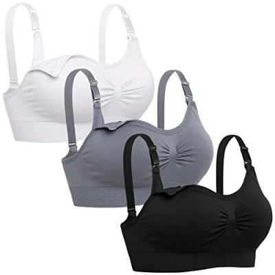 Lataly Womens Seamless Nursing Bra Sleeping Maternity Bralette for Breastfeeding, Black White Grey, M