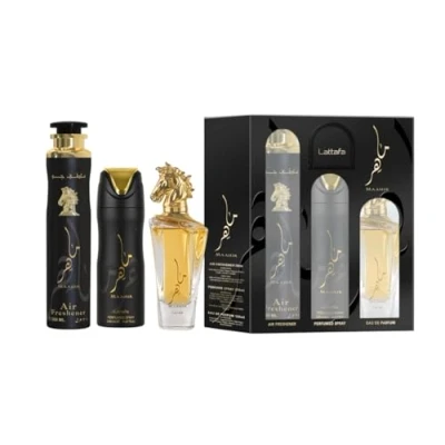 Lattafa Maahir 100ml EDP Spray + 200ml Perfume 300ml Air Freshener Gift Set