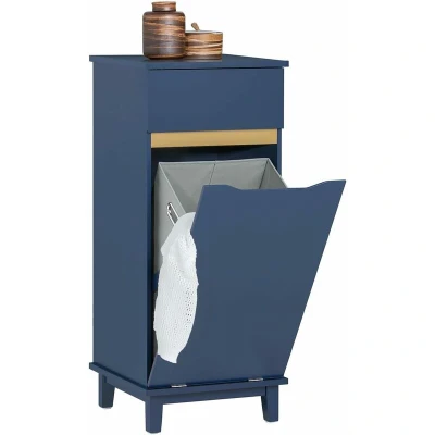 Laundry Cabinet Chest with Drawer and Basket Navy Blue,BZR114 B Sobuy