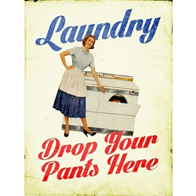Laundry drop your pants here FUNNY JOKE RETRO METAL TIN WALL PLAQUE SIGN NOVELTY GIFT Home bar shed man cave (150MM X 200MM (6" 8")