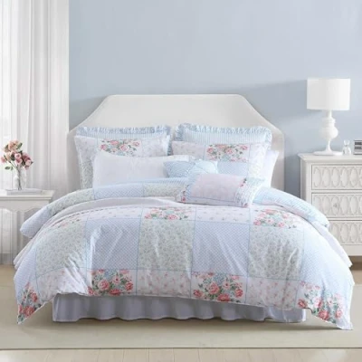 Laura Ashley Comforter Set, Hope Patchwork Blue, Includes 1 Comforter, 2 Shams, Euro Throw Pillow Covers, Twin, Super Soft Bedding