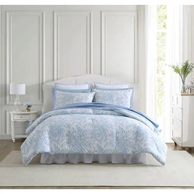 Laura Ashley Cotton Reversible Bedding Set with Matching Sham(s), Farmhouse Home Décor, Bedford Blue, King