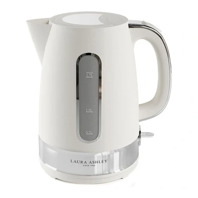 Laura Ashley Cotton White Electric Kettle 1.7L Energy Saving Kettles Fast Boil Quiet One Cup with Drip Free Pour & Removable Anti Scale Filter Heat Resistant Handle