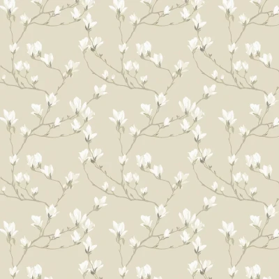WallpaperDirectA painterly, flamboyant magnolia design, with branches covered in elegant flowers. Shown in the natural beige colourway with white blooms.