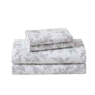 Laura Ashley Queen Sheet Set, Cotton Flannel Bedding, Brushed for Extra Softness & Comfort (Vanessa Grey, Queen)