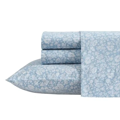 Laura Ashley Queen Sheets, Cotton Percale Bedding Set, Lightweight & Breathable Home Decor (Heirloom Ditzy Blue, Queen)