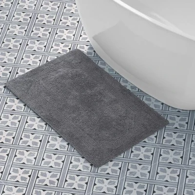 Laura Ashley Reversible Cotton Bath Mat, Charcoal, 21in. X 34in