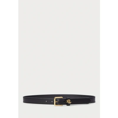 Lauren Ralph LOGO Keeper Leather Skinny BELT Belt, Women's, Size: 34, Black