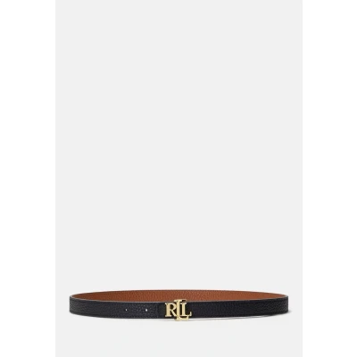 Lauren Ralph LOGO Reversible Leather Skinny BELT Belt, Women's, Size: 37, Black/tan