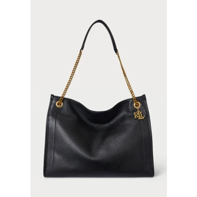 Lauren Ralph Pebbled Leather Large Bradley Tote BAG bag, Women's, Size: One Size, Black