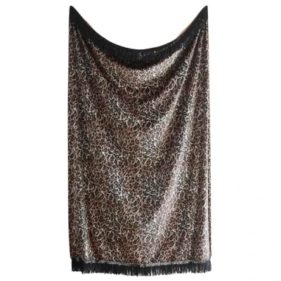 LUXURIOUS DESIGN: Stunning leopard print velvet throw designed by Laurence Llewelyn-Bowen, featuring sophisticated black fringed edges on top and bottom for elegant styling. PREMIUM MATERIAL: Crafted from 100% recycled polyester with a plush velvet texture, offering both luxury and comfort with a reversible plain dyed velvet backing. GENEROUS SIZE: Measures 130 x 180 centimetres, perfect for draping over sofas, chairs, or beds to add a touch of opulent style to any room. CARE INSTRUCTIONS: Requires sponge clean only to maintain its luxurious appearance. Keep away from fire and avoid using as loose furniture covers. VERSATILE STYLING: Bold animal print pattern in sophisticated gold colourway makes a striking statement piece whilst providing warmth and comfort.