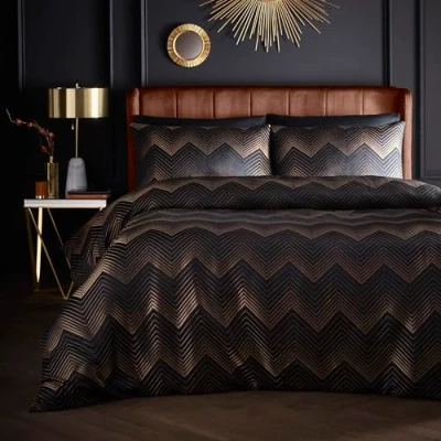 Laurence Llewelyn Bowen Duvet Cover Set, 96% Polyester 4% Metallic Polyester, Super King 260x220cm, Black, Jacquard, Button Closure, Chevron Pattern