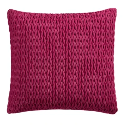 Laurence Llewelyn Bowen Fuchsia Pink Velvet Cushion 43 x 43cm Plaited Crochet Design Filled Amory Collection Luxury Decorative for Sofa or Bedroom