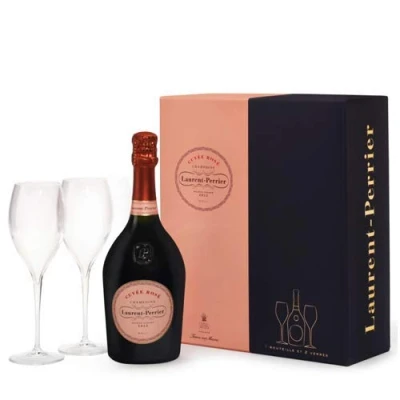 The iconic Cuvée Rosé, in the famous Rosé bottle. Since 1968, Laurent‑Perrier has developed the mastery of a very particular and rare know-how in Champagne: maceration. This process makes it possible to obtain the richest and most subtle expression of Pinot Noir. This wine is characterized by its ripe red fruit aromas, a high intensity and great freshness Made from 100% Pinot Noir from the best crus in the Montagne de Reims and the House's own vineyards. Showcases the audacity and creativity of the House of Laurent-Perrier Includes two champgne flutes - perfect for gifting