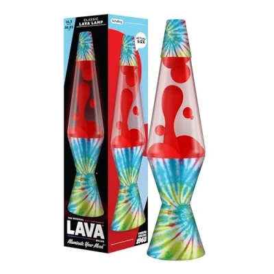 Item Size: 14.5 inches tall LAVA Lamp produces a soft warm light and mesmerizing visuals of ever changing, moving wax gently rising and falling in iconic trademarked-shaped glass globe 2498 is a classic LAVA Lamp with red wax in clear liquid and decorative decal on aluminum base and cap Illuminate your mood with styles for any room and personality 25 Watt light bulb included; Plugs into UK power outlet