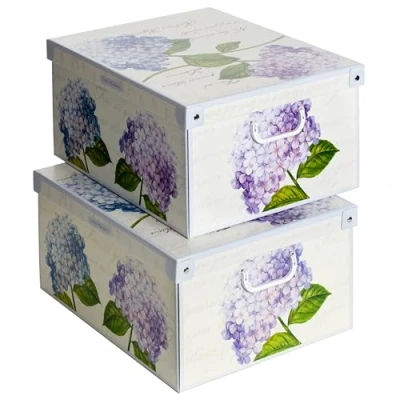 LAVATELLI Collection Ortensie Hydrangeas, Decorative Storage Box, Cardboard Boxes with Lids, Lids and Handles, Clothes Storage, Toy Box 2