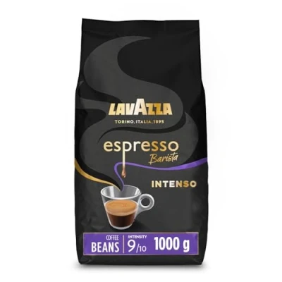 Lavazza, Espresso Barista Intenso, Drum Roasted Coffee Beans, with Aromatic Notes of Cocoa and Wood, Arabica Robusta, Intensity 9/10, Medium Roasting, 1 kg (Packaging May Vary)