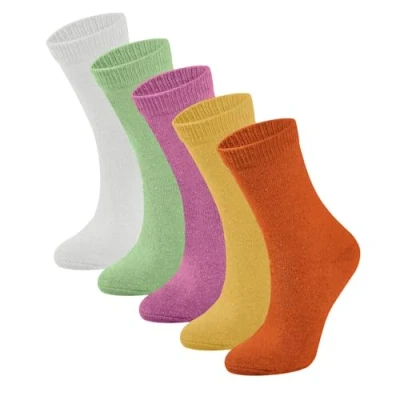 lavendel Women's Wool Socks, 5 Pairs, Colourful Thermal, Breathable, Fine Knitted Comfortable Warm Winter Socks for Ladies UK size 4 7
