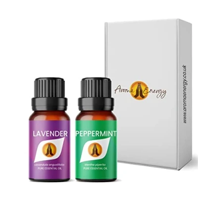 Lavender & Peppermint Essential Oil Set 2 x 10ml Diffuser for Home, Candle Making, soap, Wax Melts, Massage, Perfume, Aromatherapy Gift Box Vegan Made in UK