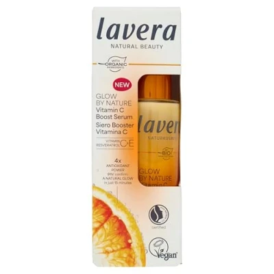 lavera Glow By Nature Vitamin C Boost Serum intensive hydration refreshes & smoothes reduces pigmentation spots acne scars Q10 vegan natural cosmetics 30 ml
