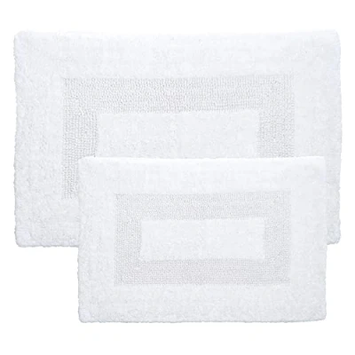Lavish Home Cotton Bath Mat Set 2 Piece 100 Percent Mats Reversible, Soft, Absorbent and Machine Washable Bathroom Rugs (White), 35" x 22"x 0.5"