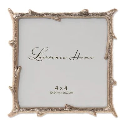 Lawrence Frames Metal Picture Frame, Natural Branch Design, Gold, 4x4