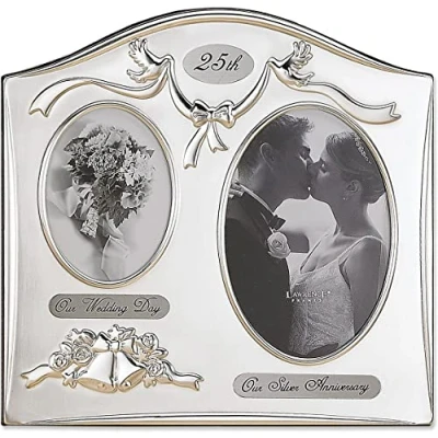 Lawrence Frames Satin Silver and Brass Plated 2 Opening Picture Frame, 25th Anniversary Design,4 by 6 Inch