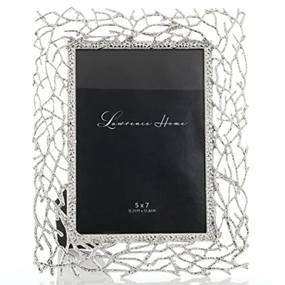 GORGEOUS DESIGN: High quality silver metal with intricate open branch design HIGH QUALITY: Heavy weight cast metal frame is made with beautiful craftsmanship ELEGANT and LUSTROUS METAL FINISH: Elevate your home décor with this sophisticated timeless design that will complement any room EASY TO OPEN: High quality easy open black velvet backing and sturdy easel for table top display PHOTO SIZE: Holds 5 inch by 7 inch photo, vertical or horizontal