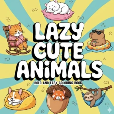 Lazy Cute Animals: A Bold and Easy Coloring Book with Adorable Relaxing Animal Designs for All Ages