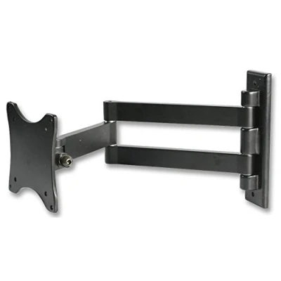 Stylish LCD wall mount featuring a long reach, dual arm design. Flexible adjustment for optimal screen positioning; allows the mount to be folded back against the wall to leave just 50mm between TV and wall. Suitable for 13" to 27" flat panel screen sizes, One piece design requires no assembly - simply fix to the wall then attach the screen Slim line wall plate ideal for fixing to studded walls, Lightweight aluminium construction with twin bars for added rigidity TV to wall: min 50mm, max 372mm, 180° swivel and 45° tilt Supplied with an assortment of popular fixings, GS / TUV approvals, Contents: Wall mount and fixings, Manufacturer: Pro Signal