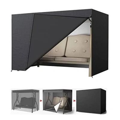 LCGOD Garden Swing Cover 2 Seater Waterproof Hammock with Zips, Black 600D Oxford Fabric Outdoor Seat Dustproof Snowproof Windproof Anti UV 150 x 100 165/140 cm