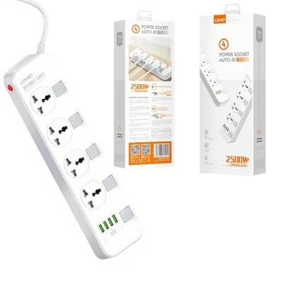 LDNIO Power Strip with 4 AC Sockets, x USB, SC4408, 2500W (White)