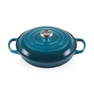 The Le Creuset Signature Deep Teal Cast Iron 26cm Shallow Casserole is an exceptional kitchen essential, designed for a variety of cooking techniques and styles. Whether you’re preparing rich, creamy risottos, tender braised meats, colorful vegetable medleys, or golden-brown pastries, this versatile casserole makes it easy to create mouth-watering dishes.