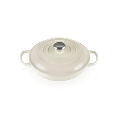 The Le Creuset Signature Meringue Cast Iron 26cm Shallow Casserole is more than just a cooking vessel; it’s a timeless piece designed to elevate your culinary creations while standing the test of time, backed by a manufacturer's lifetime warranty. Enjoy the art of cooking with this versatile, easy-to-use piece that combines tradition, quality, and style.