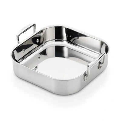 The high handles on this Le Creuset 3-Ply Stainless Steel 26cm Square Roaster offer a safe and secure grip when lifting and manoeuvring. Perfect for roasting meat and vegetables, this square roaster can also be used for baked desserts and can be used on any heat source (including induction) as well as in the oven. Le Creuset 3-Ply Cookware uses the latest multi-layering technology, bonding an aluminium core between two layers of premium-grade stainless steel. This allows heat to spread quickly and evenly throughout the entire pan - from base to rim. It also makes it suitable for use on all heat sources, including induction, whilst also being ovenproof and dishwasher safe (though we always recommend handwashing). Supplied with a Le Creuset lifetime guarantee.