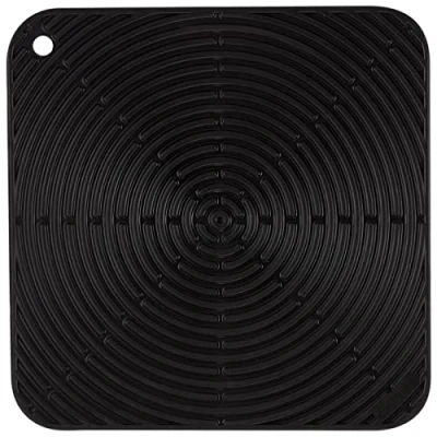 Flexible silicone trivet/counter protector, Heat-resistant layer for setting hot cookware on the counter or table safely Versatile: Also functions as an anti-slip mat or even a pot holder Premium quality silicone, Stain and odour resistant, Heat resistant up to 250°C, 2-year warranty Easy to use and clean, Hanging loop for easy storage, Dishwasher safe Contents: 1x Le Creuset silicone counter protector, Dimensions: 29 x 29 x 0.5 cm, Colour: Black Onyx, 93005629140000